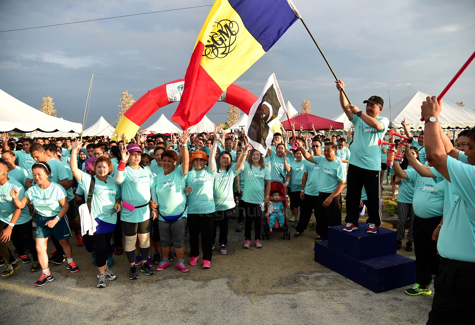 | Dato' Mohd Zubir mengibarkan bendera SGM dalam perasmian Run For Peace 2017. - Foto oleh Tengku Syamim Tengku Ismail. |