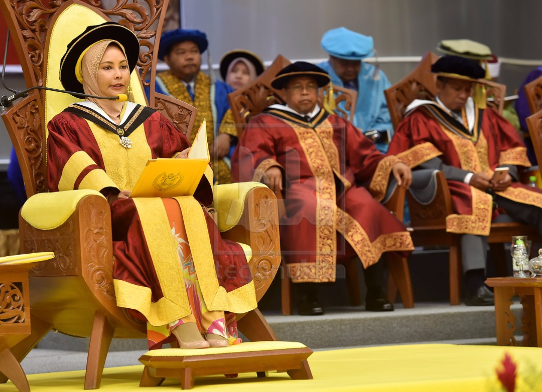 | Sultanah Terengganu, Sultanah Nur Zahirah yang juga Canselor UniSZA menyempurnakan istiadat pembukaan majlis konvokesyen UniSZA pada hari pertama, hari ini. Foto oleh Tengku Syamim Tengku Ismail |