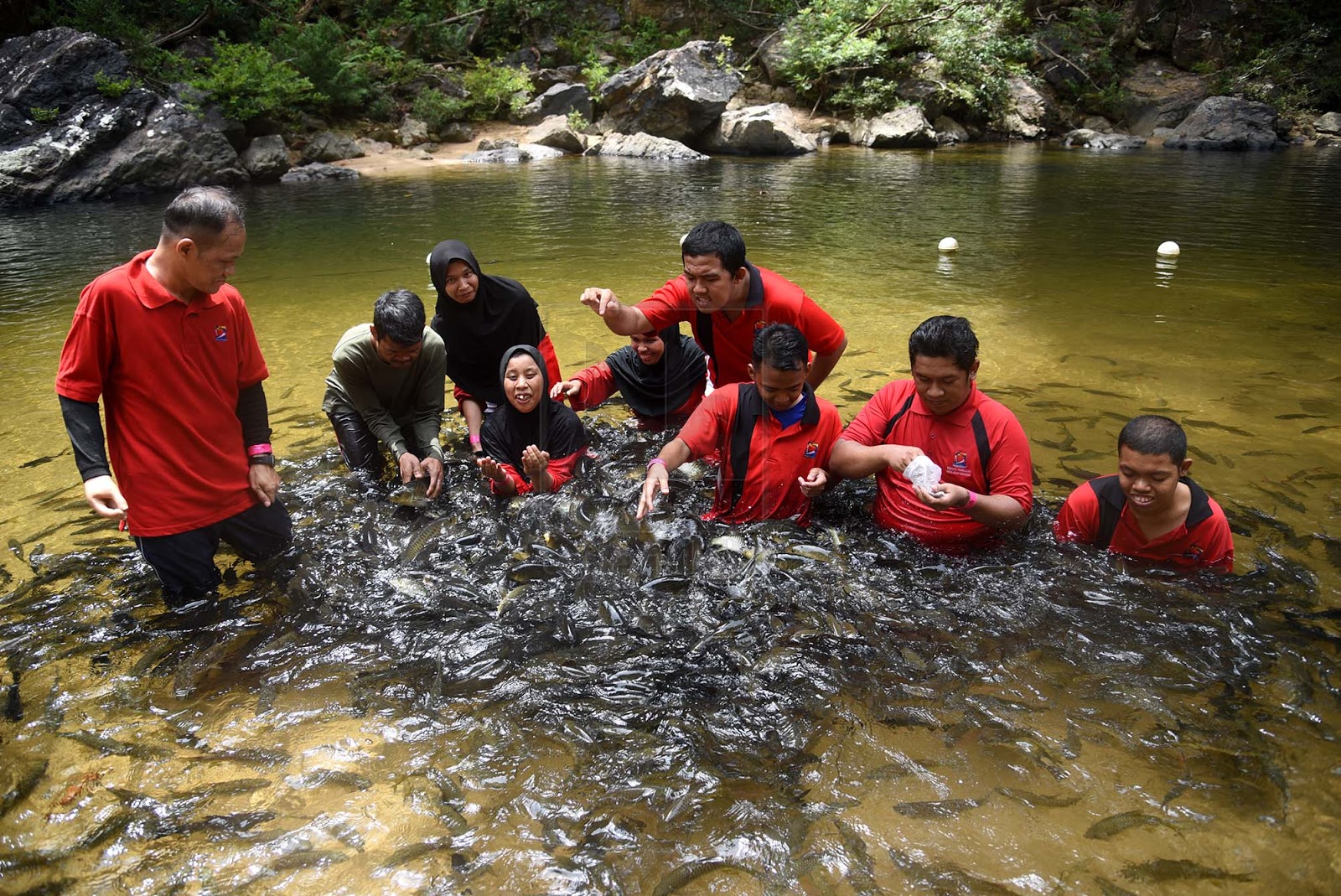 Seramai 45 pelatih Bengkel Pemulihan Kebajikan Marang, di Pulau Kerengga, Marang mendapat peluang sama seperti golongan normal lain apabila menghayati keindahan Tasik Kenyir dan menjinak ikan kelah di Santuari Kelah, Hulu Terengganu, baru-baru ini.