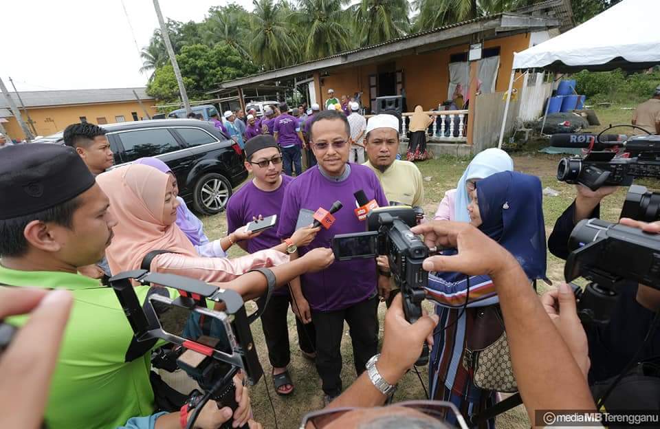 | Dr Ahmad Samsuri (tengah) ditemubual Media di Rhu Muda Marang hari ini |