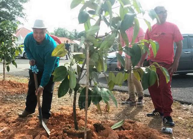 Seramai 200 peserta terdiri daripada kakitangan Majlis Daerah Setiu (MDS) dan penduduk Taman Sri Intan, Sungai Tong, Setiu mengadakan gotong royong menanam pokok di kawasan taman itu, hari ini.