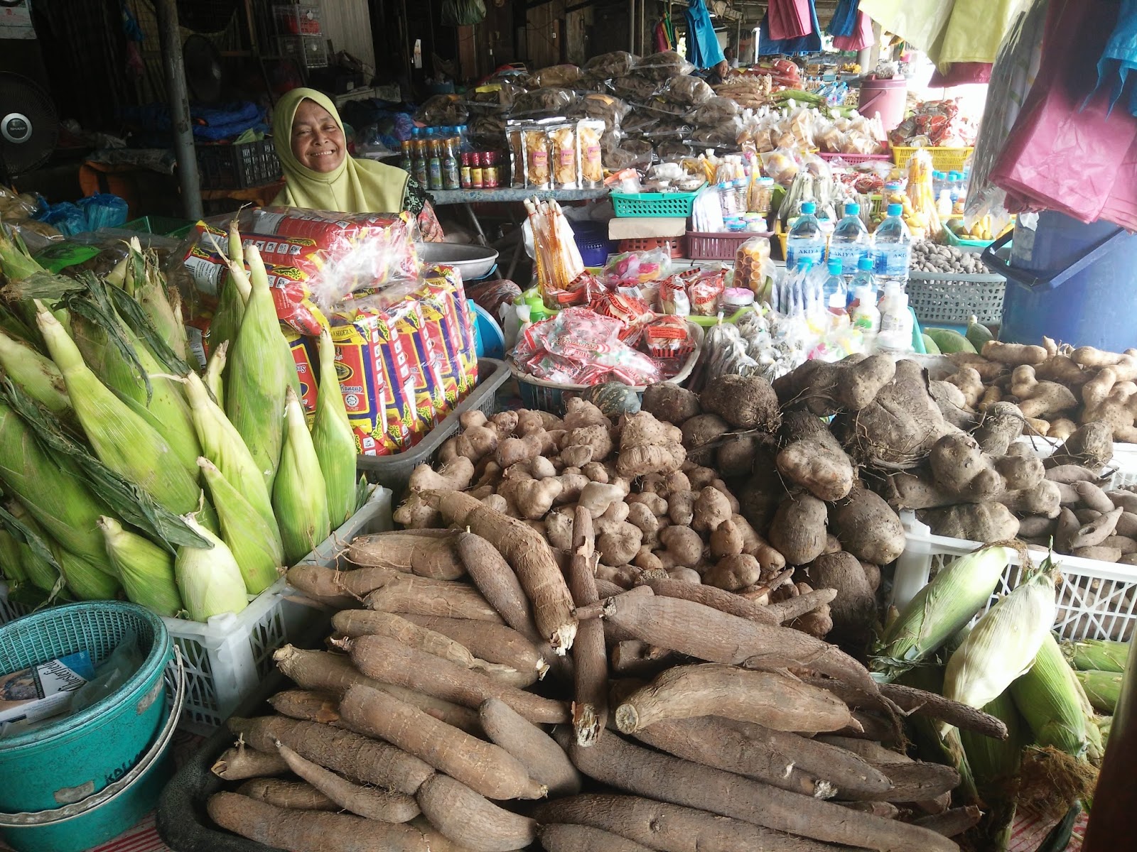 “Kebanyakan hasil yang mak cik jual ini dibeli daripada orang-orang kampung secara tak langsung membantu sedikit sebanyak ekonomi mereka. Kalau musim boh (tengkujuh) ubi yang paling laku(laris)sebab ramai yang suka sangat makan mengikut cara mereka masak kat rumah.
