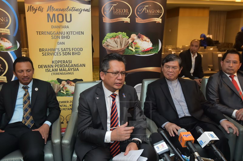 Beliau ditemui pemberita selepas menyaksikan Majlis Menandatangani Perjanjian Persefahaman Antara Terengganu Kitchen Sdn Bhd dan Brahim's SATS Food Services Sdn Bhd, Koperasi Dewan Perdagangan Islam Malaysia (Terengganu) serta Yayasan Pembangunan Keluarga dan Brahim's SATS Food Services Sdn Bhd di Kuala Lumpur, hari ini.