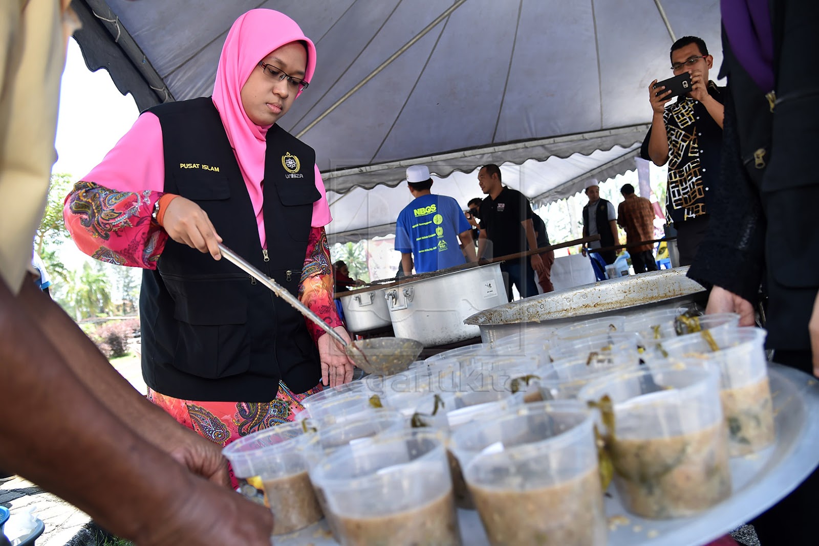 Melalui program itu, sebanyak 800 bekas bubur lambuk diagihkan kepada pengguna jalan raya dan 600 bekas lagi untuk jemaah Masjid UniSZA, Gong Badak, Kuala Nerus.