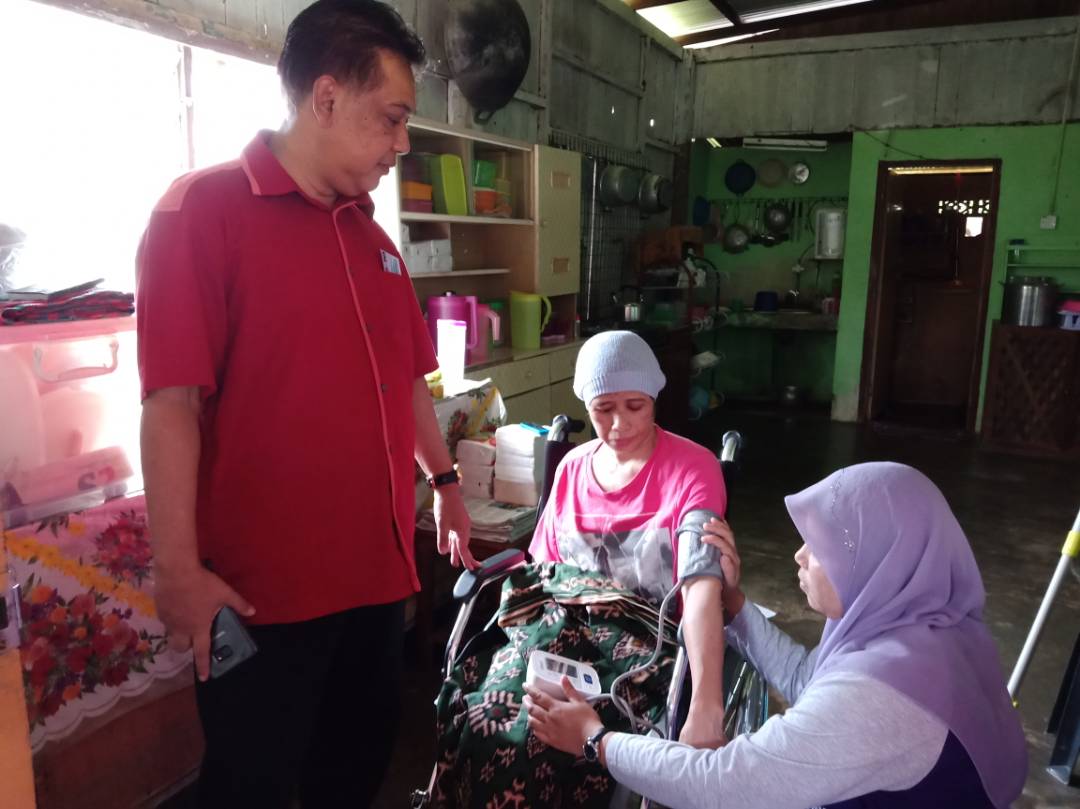 Hampir lapan tahun saya terlantar, hanya mampu bergerak menggunakan kerusi roda dan tidak dapat bertutur seperti dahulu sejak diserang strok dan lumpuh hampir seluruh badan, kata Faridah Othman ,49 dari Kampung Bukit Apit,Ajil.